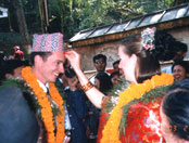 | USA Elective students, Grover and Linda getting married according to Nepalese Traditional style at the Dakshinkali Temple, Organised by Hotel Kantipur Shakya Family, Staffs and three German Elective Students |