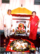 (Hotel Owner, Worshiping in the annual puja with special feast called Samay Baji along with 20 varieties of curries, meat, sweets, fish, egg and wine etc. ) |